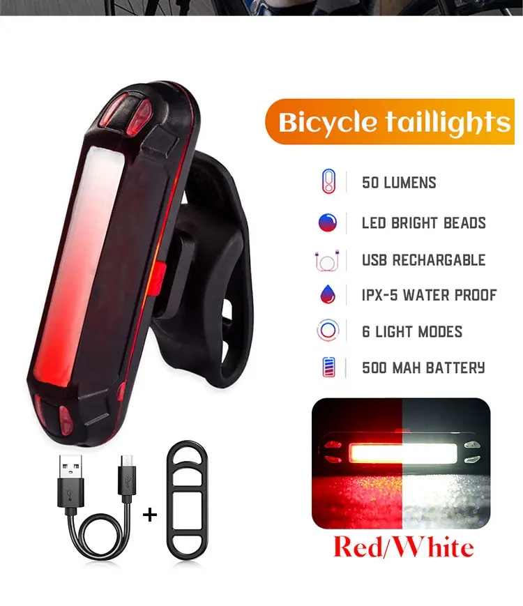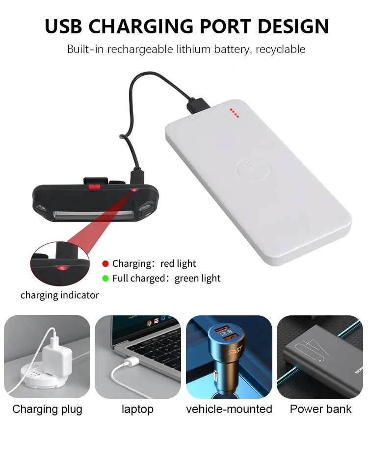 • USB Rechargeable :The bike tail light is USB rechargeable, making it convenient to use and eliminating the need for frequent battery replacements.