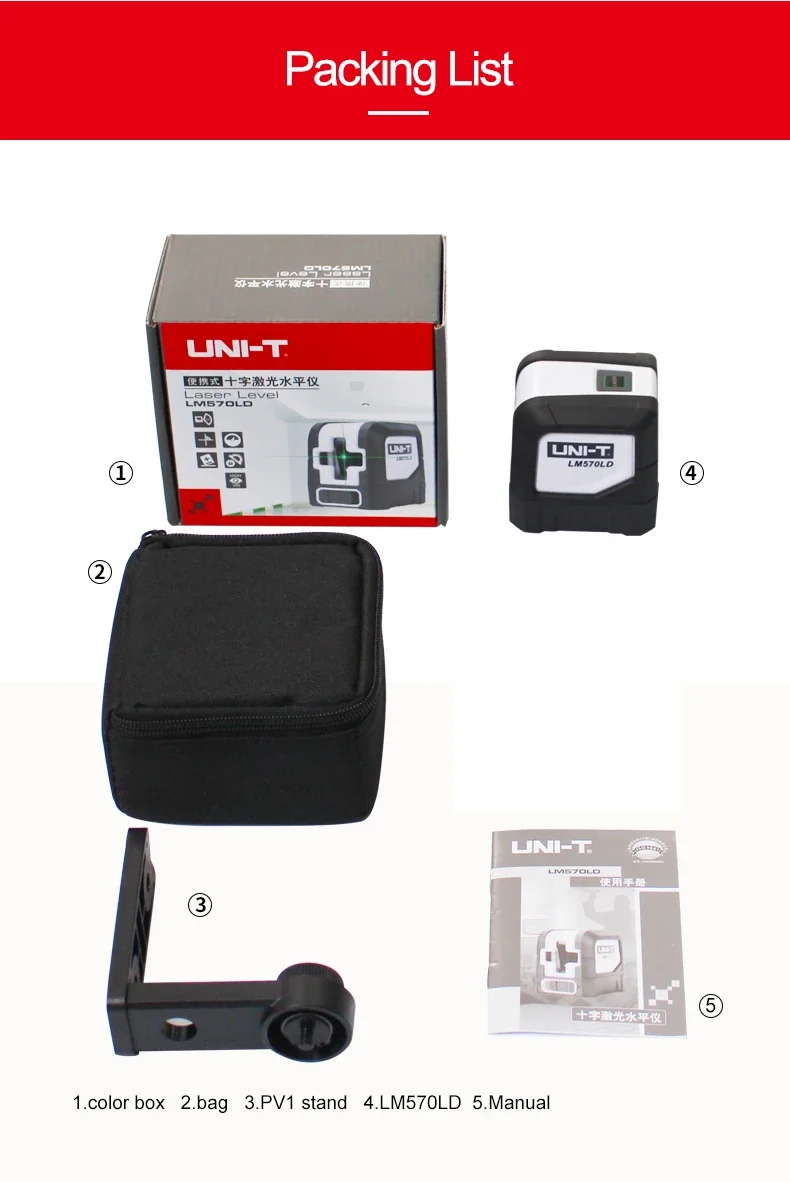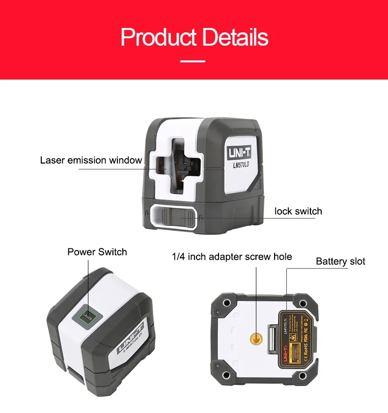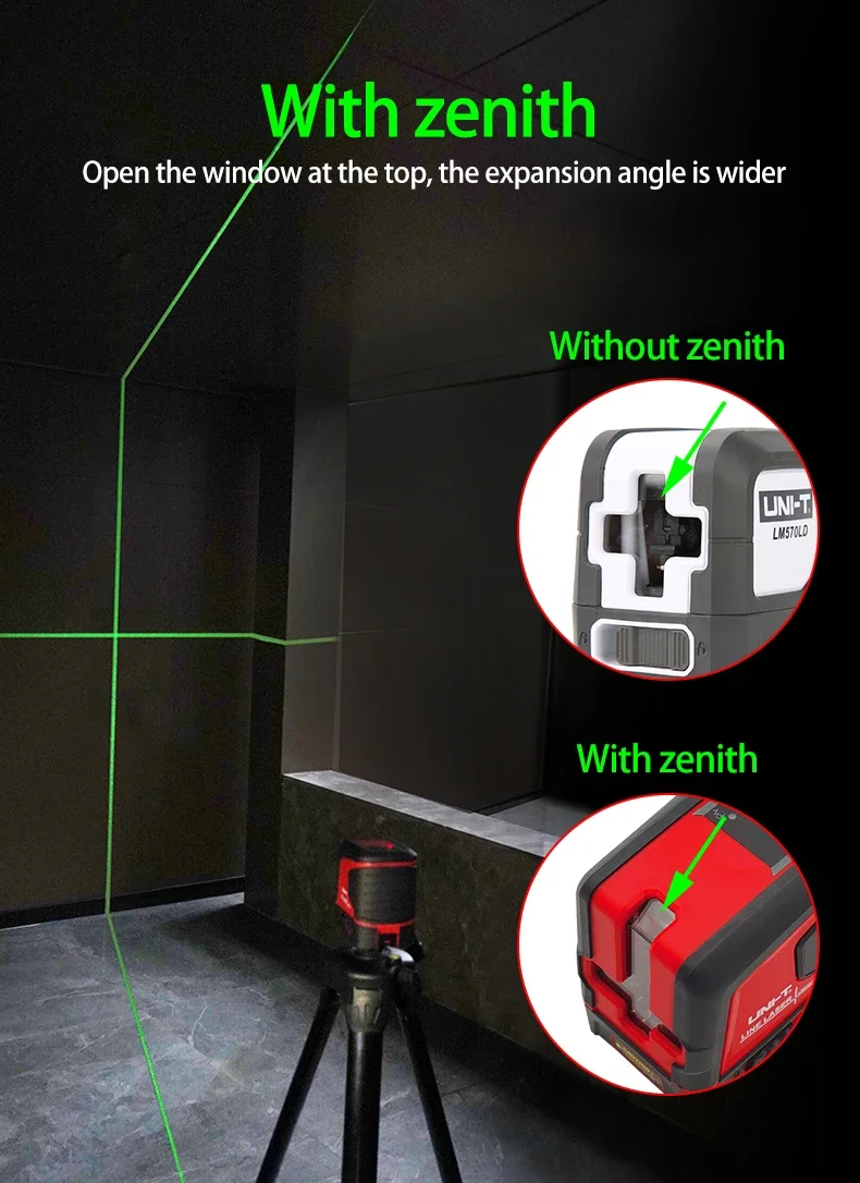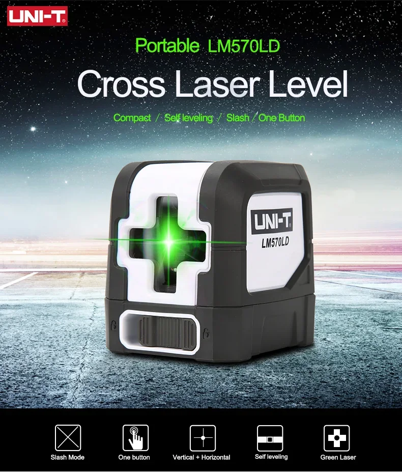 UNI-T LM570LD-II 2 Lines Laser Level Green Beam Self-Leveling Vertical Horizontal Cross Line Layout Measuring Instrument