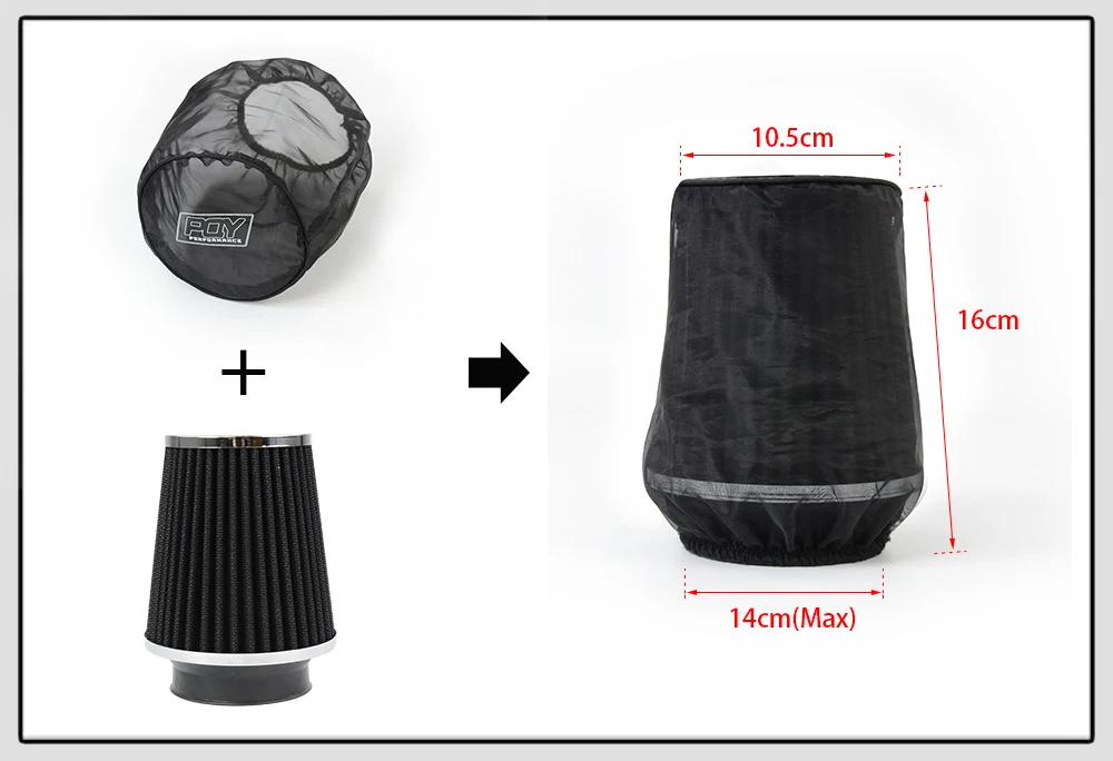Universal Air Filter Protective Cover Waterproof Oilproof Dustproof for Cylindrical High Flow Air Intake Filters Black VR-AIB01
