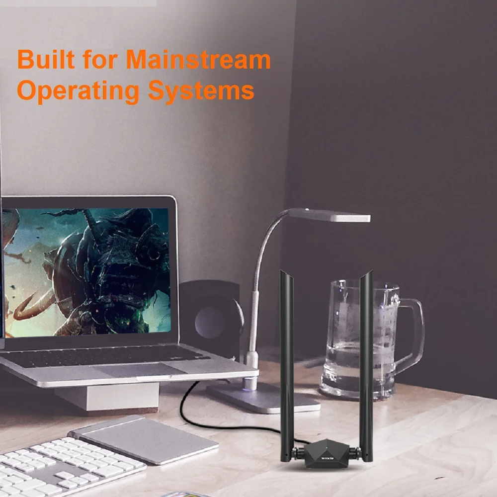 U18a is a Dual-Band USB Adapter with 2*extenal high-gain 5dBi antennas and the latest Wi-Fi 6 technology
