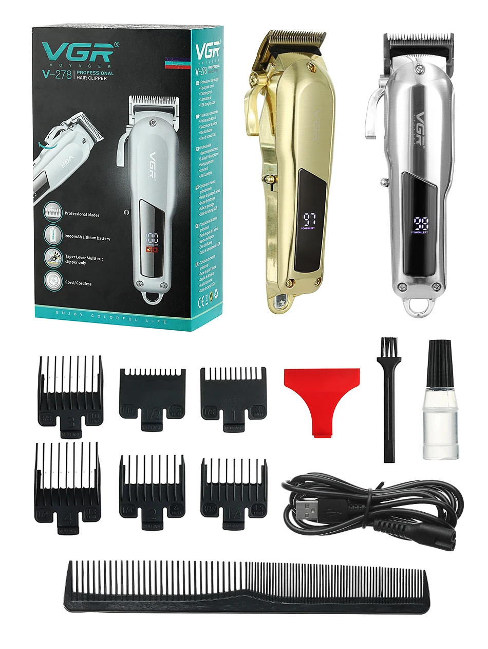 • VGR 278 Electric Hair Clipper Personal Care Professional Trimmer LCD USB Salon Home Appliance Battery Supplies Washable VGR V278