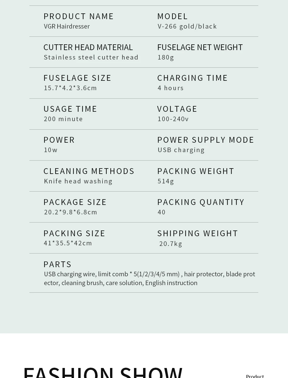 Description Description VGR V266 Hair Clipper Home Appliance Professional Personal Care USB Trimmer Barber LCD Electric T9 Rechargeable Metal VGR 266 View AllClose
