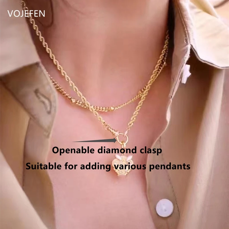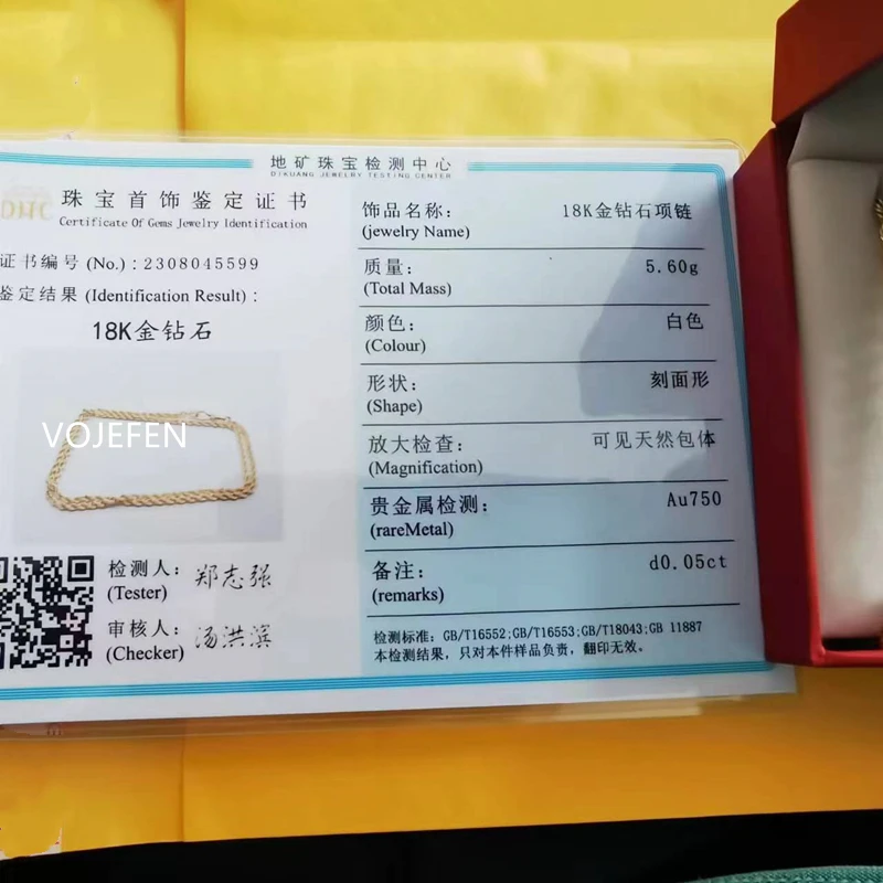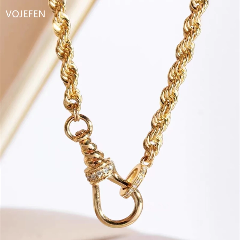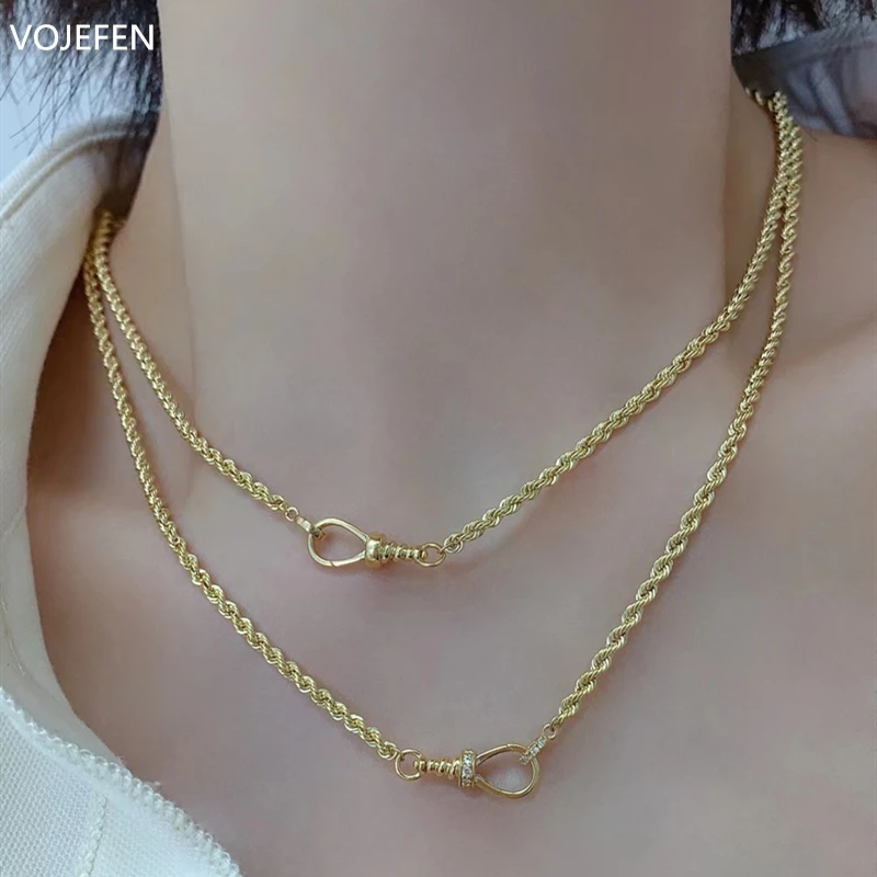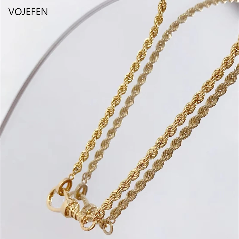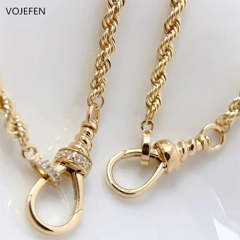 VOJEFEN, 18 K Real Solid Gold Jewelry, Personalised Rope Chain Necklace, With Mini Diamonds Button, Luxury Goods,