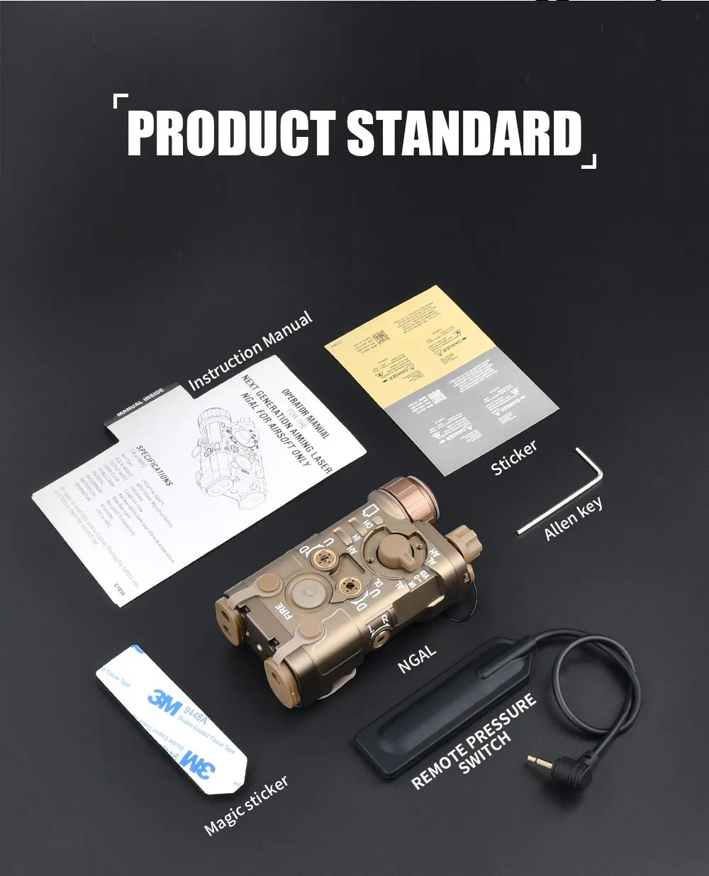• WADSN Metal NGAL PEQ Red Green Blue IRLaser Airsoft White Flashlight/Srtobe Picatinny Rail AR15 Rifle Outdoor Hunting Flashlight