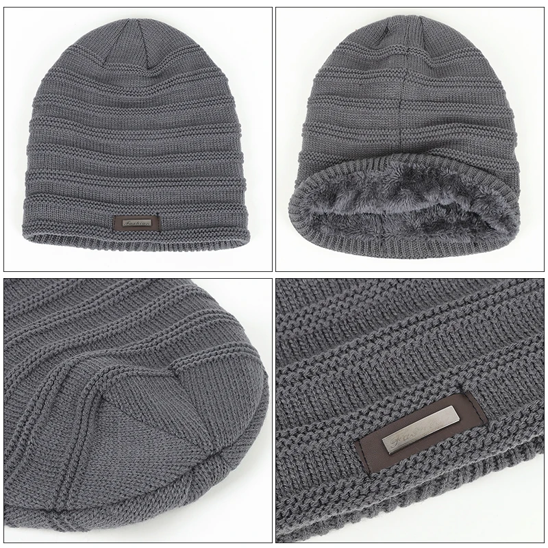 Description Description Warm Men's Winter Hat Polyester Fleece Lined Knitted Cap Striped Plain Beanies with Tag Fashionmaterial:100% acrylic,polyester fleeceone size fits allfor head 58 cm View AllClose