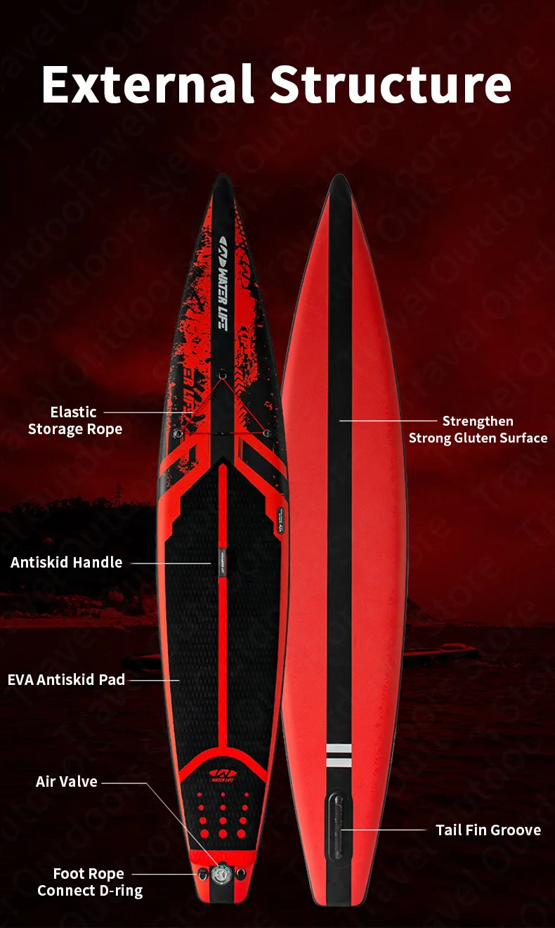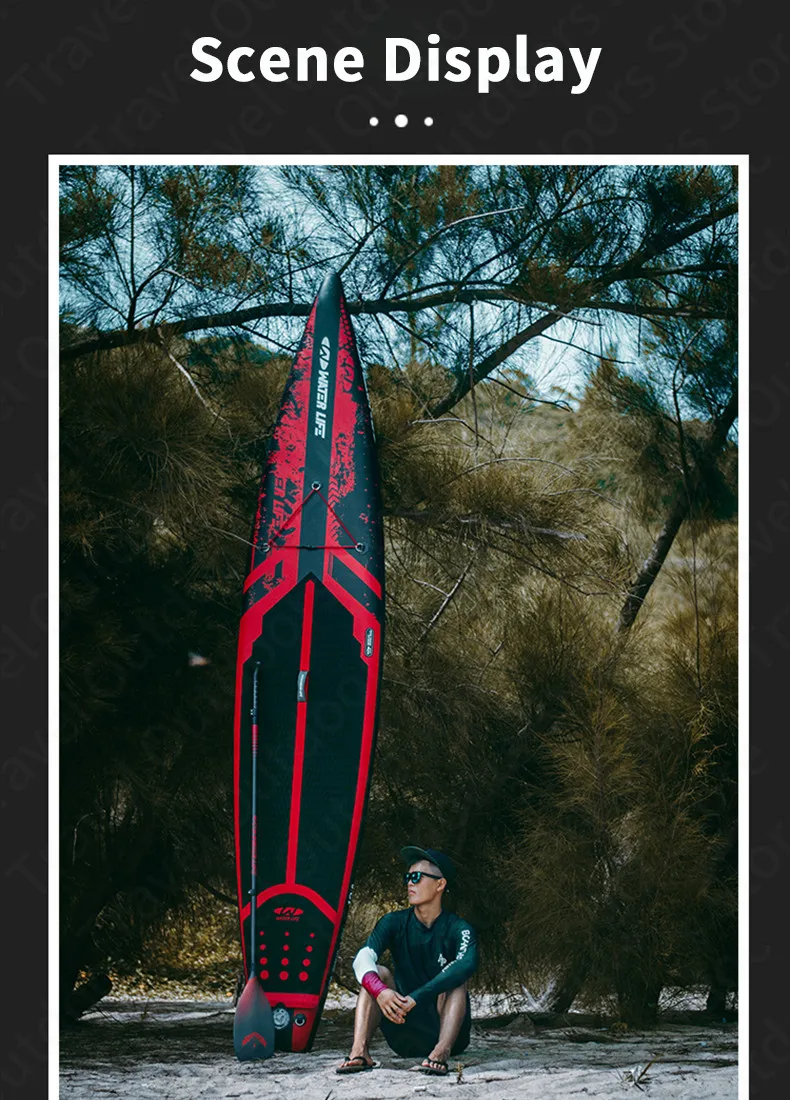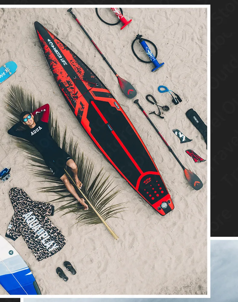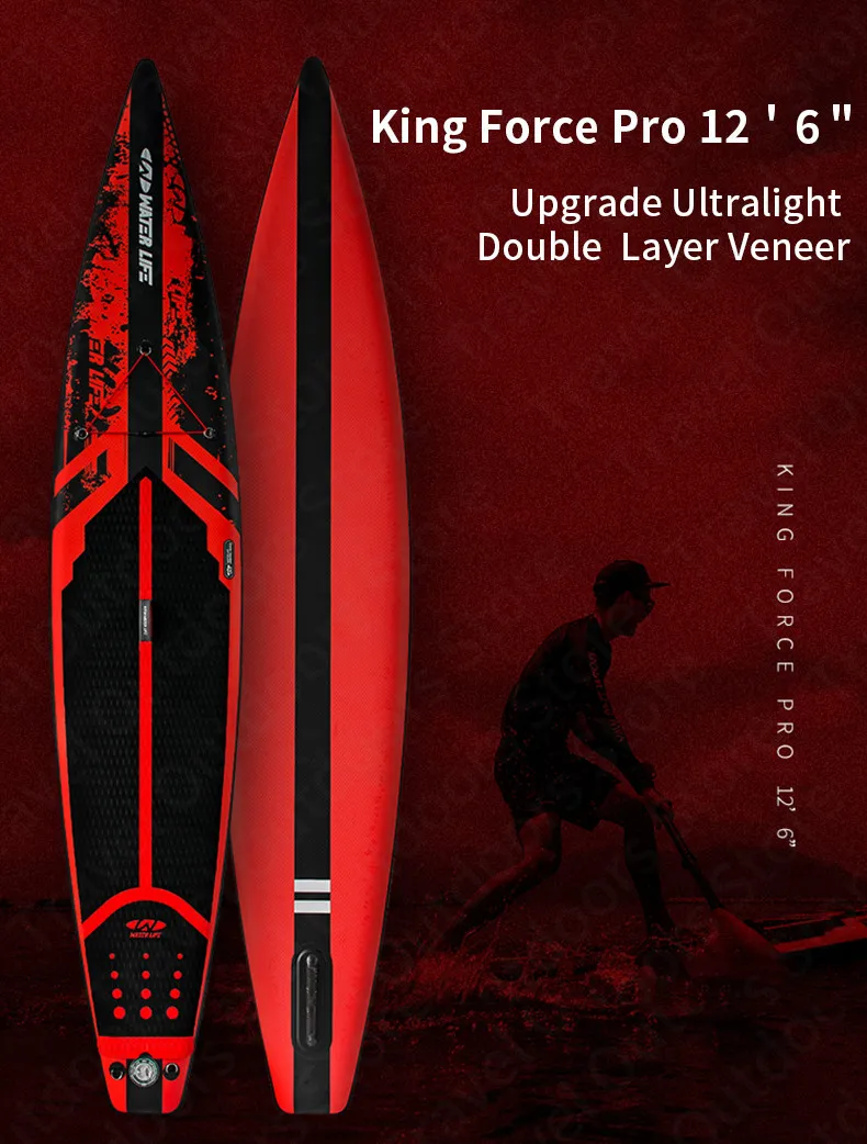 Set B:King Force Pro 12’6"Surf Board+Backpack+Air Pump+Tail Fin+Repair Tank+Accessories Bag+Safety Foot Rope+Red Three Section Carbon Fiber Paddle