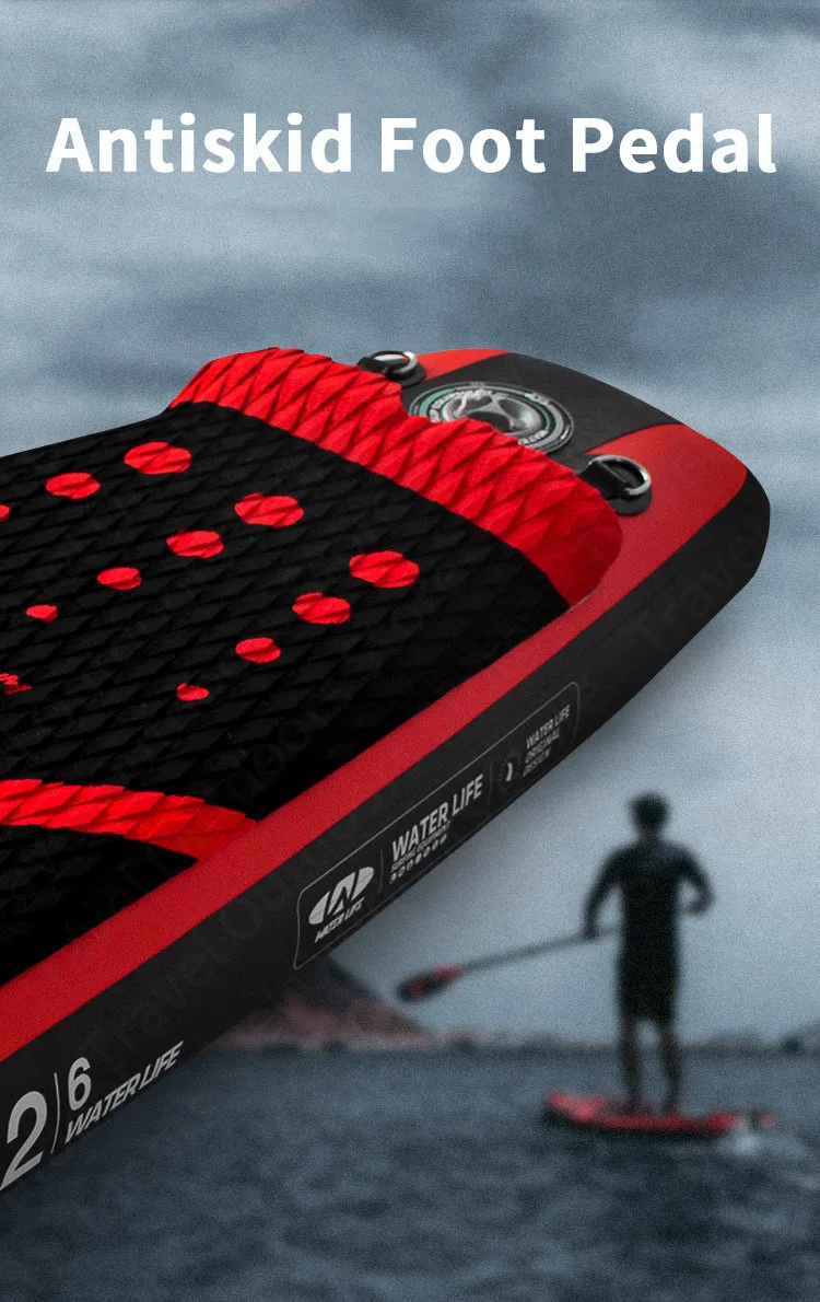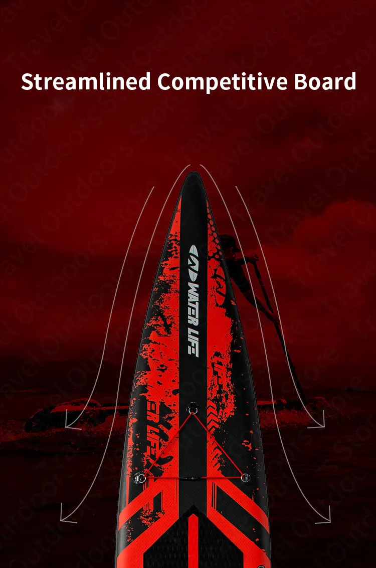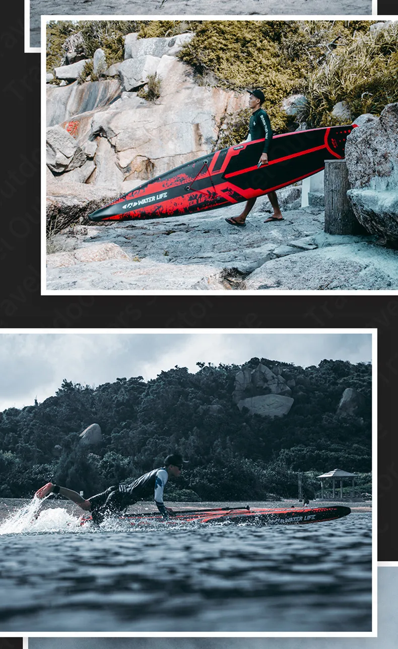 Set B:King Force Pro 12’6"Surf Board+Backpack+Air Pump+Tail Fin+Repair Tank+Accessories Bag+Safety Foot Rope+Red Three Section Carbon Fiber Paddle