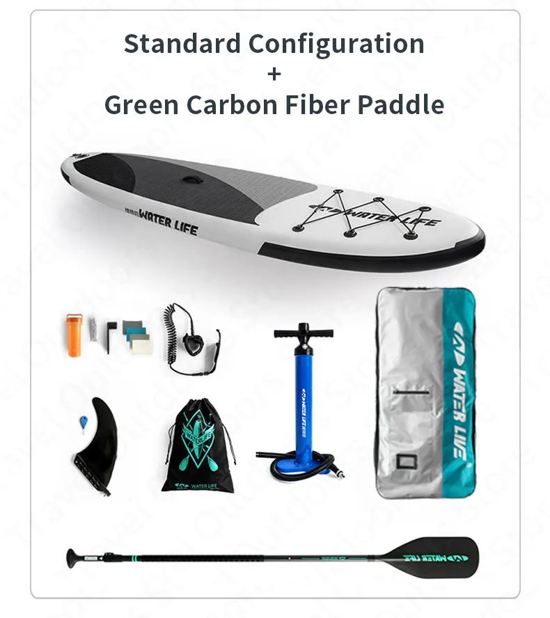 Set C:WL 106"Surf Board+Backpack+Air Pump+Tail Fin+Repair Tank+Accessories Bag+Safety Foot Rope+Green Three Section Carbon Fiber Paddle