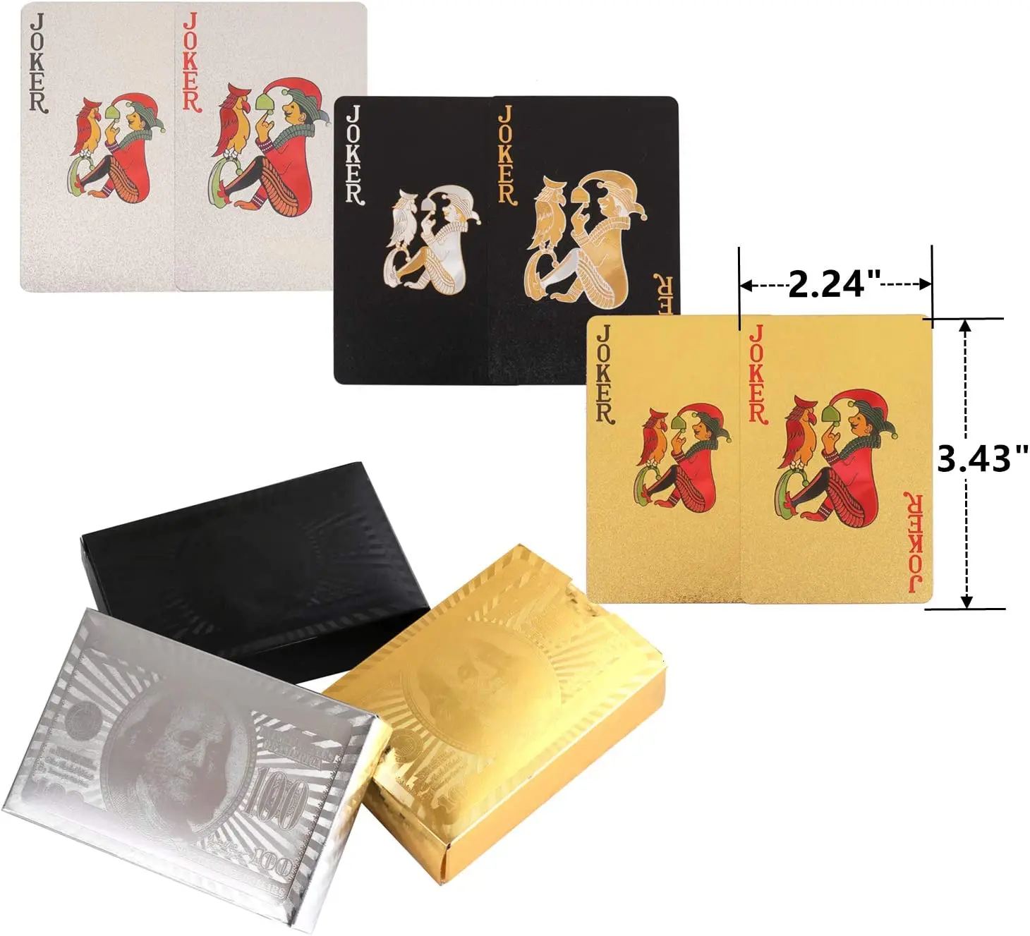 Waterproof Gold Black Silver Standard Playing Cards Plastic Poker Cards Highly Flexible Foil Poker Cards For Party Card Decks Game