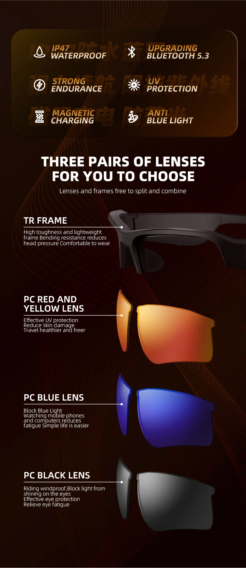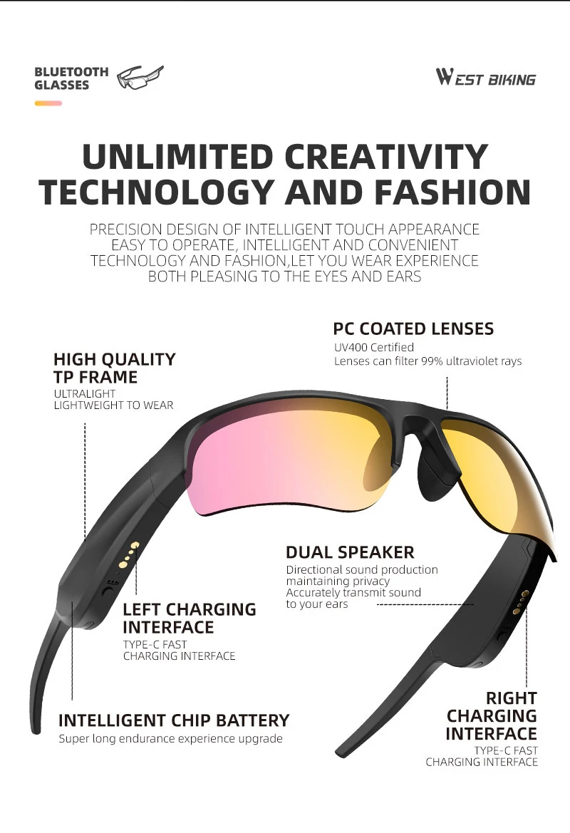 Open-Ear Audio,Stereo Sound,Voice Assstant,Bluetooth 5.3,Bluetooth Call,Play Music,UV Protection,etc.