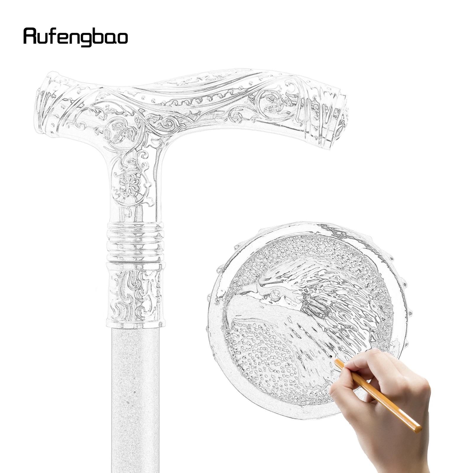 White Eagle Head Flower Totem Relief Walking Cane Fashion Walking Stick Gentleman Crosier Knob Walking Stick 93cm