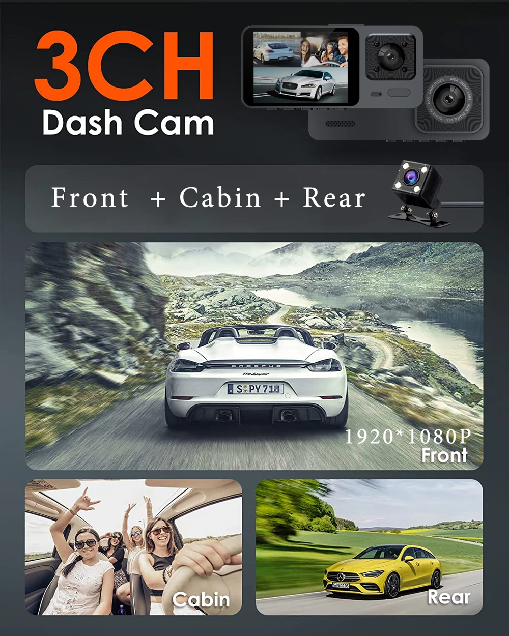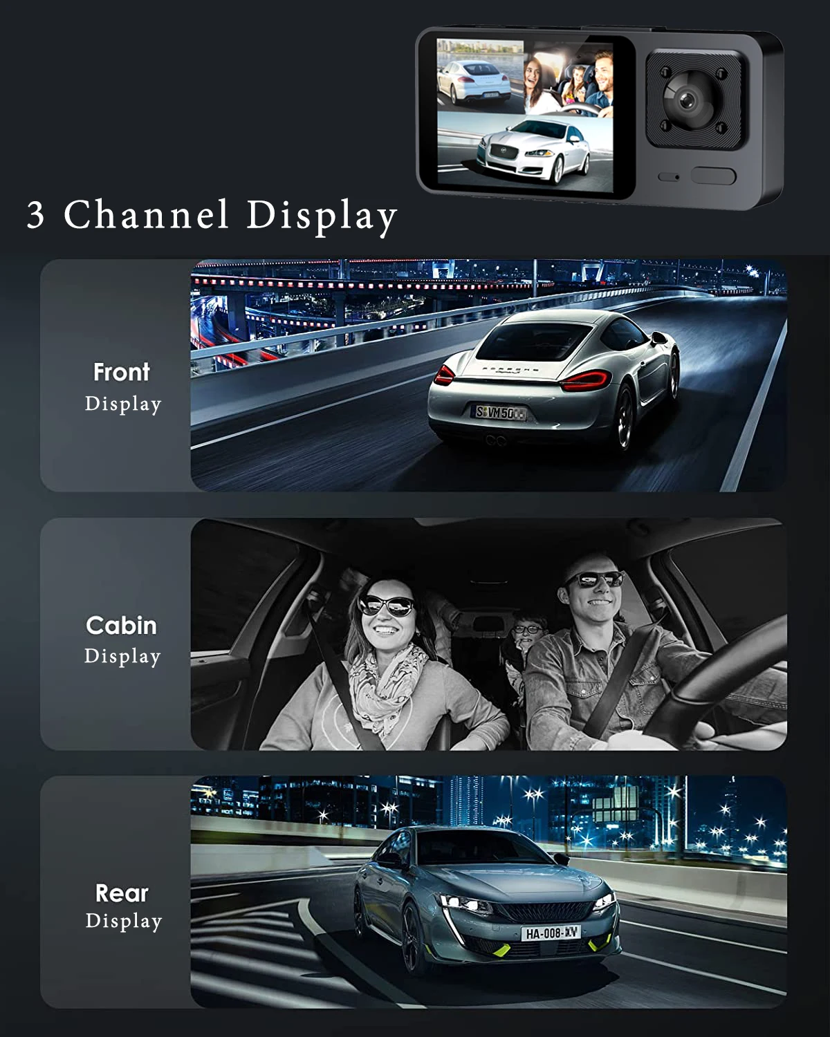 WIFI-3 Camera Lens Car DVR 3-Channel Dash Cam HD 1080P Dash Camera Dual Lens Dashcam Video Recorder Black Box 24H Parking Monitoring