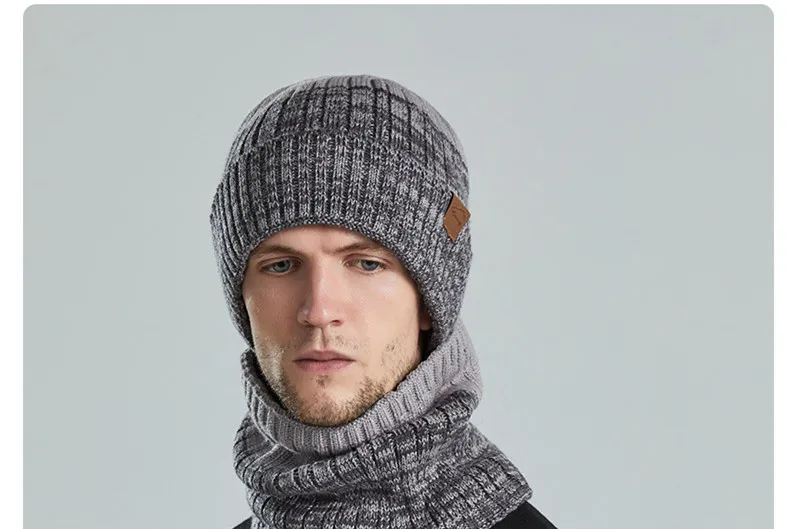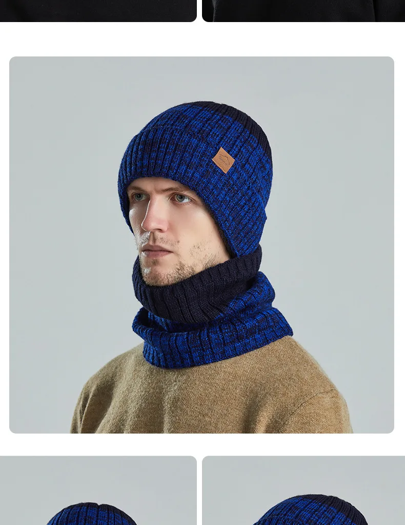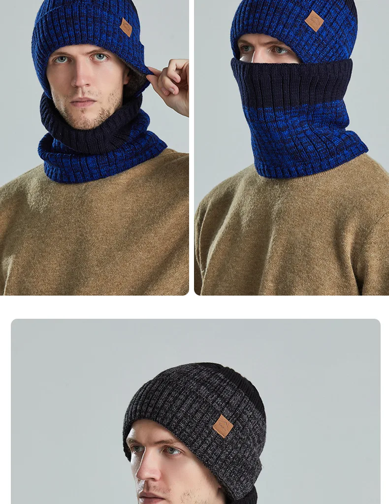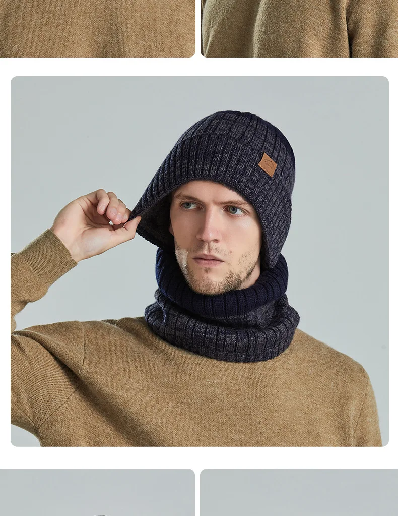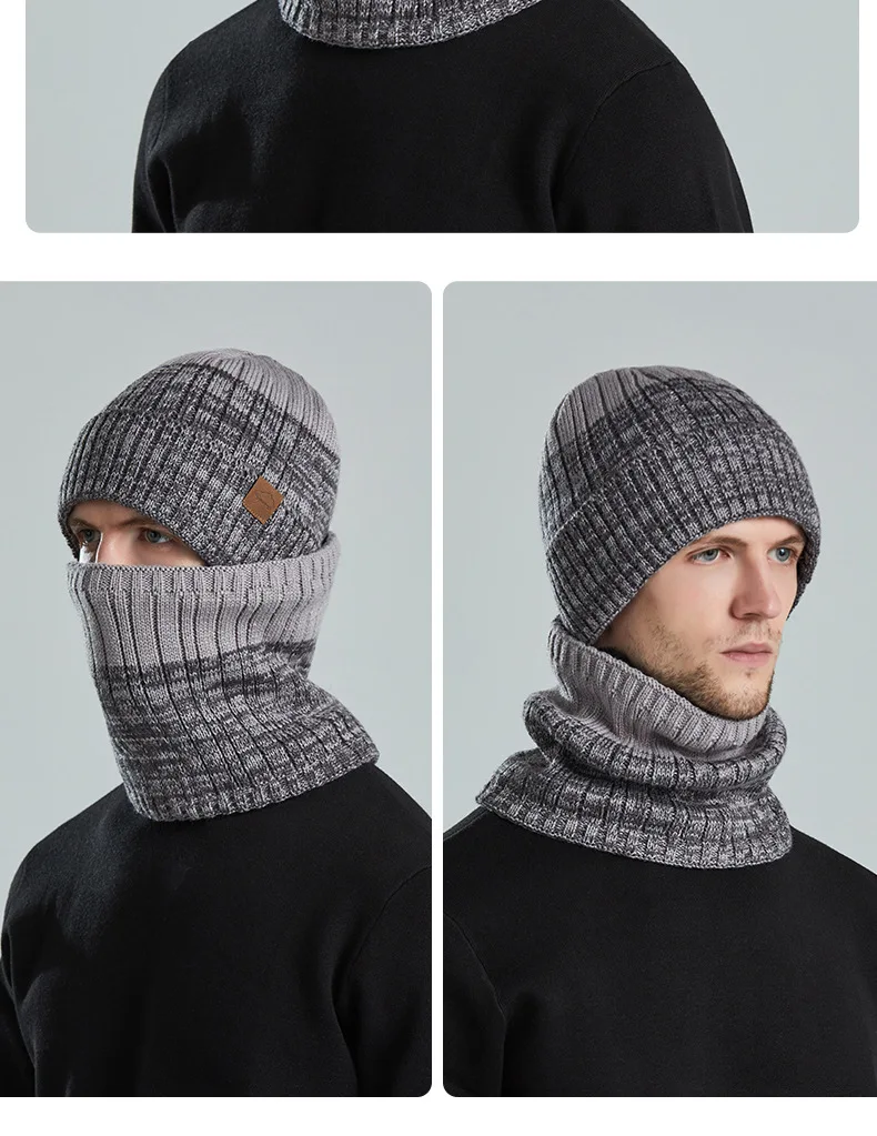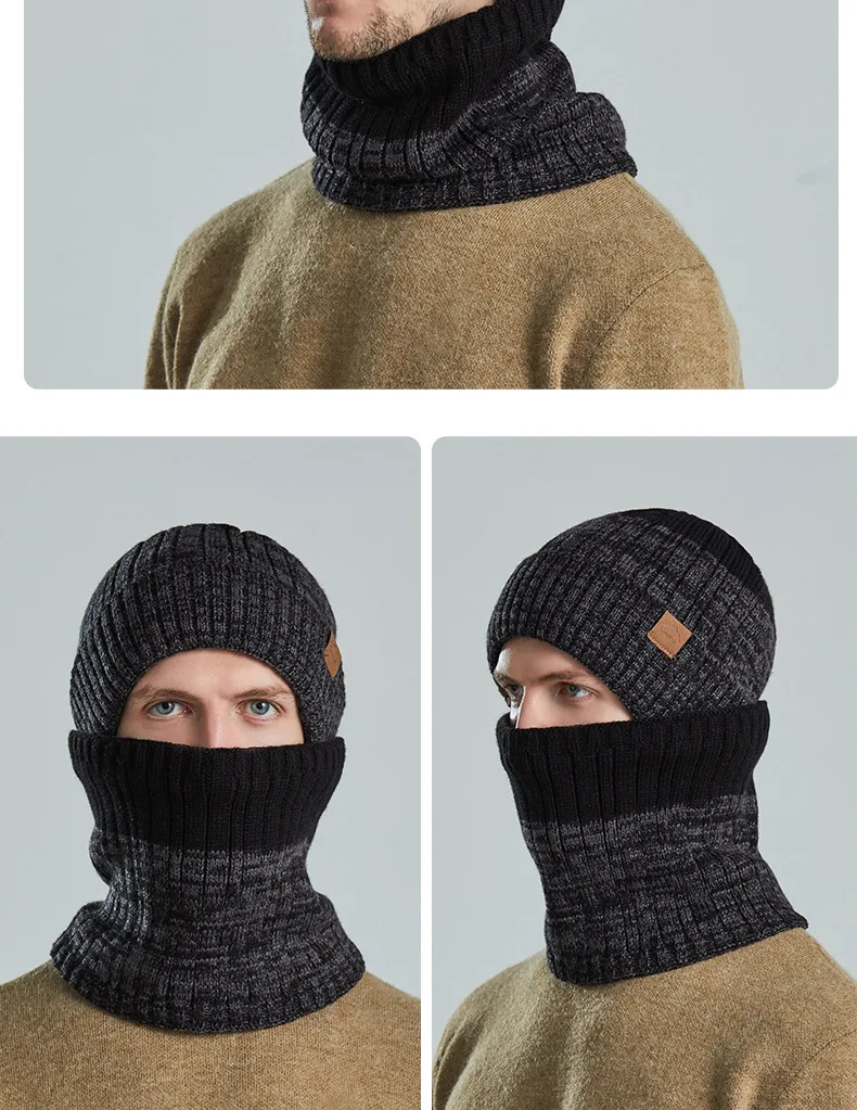 Winter Hat for Men Pullover Hat Scarf Sets Plush Velvet Fleece Lined Women Thick Warm Beanie Hat Balaclav Knitted Hat Caps Male