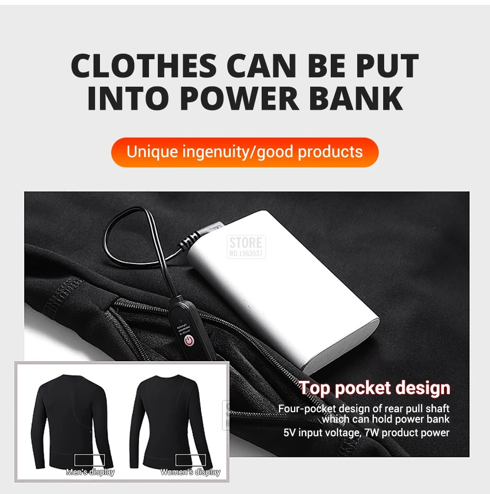 • Winter Thermal Heated Jacket Men Vest Heated Underwear Men's Ski Suit USB Electric Heating Clothing Fleece Thermal Long Johns