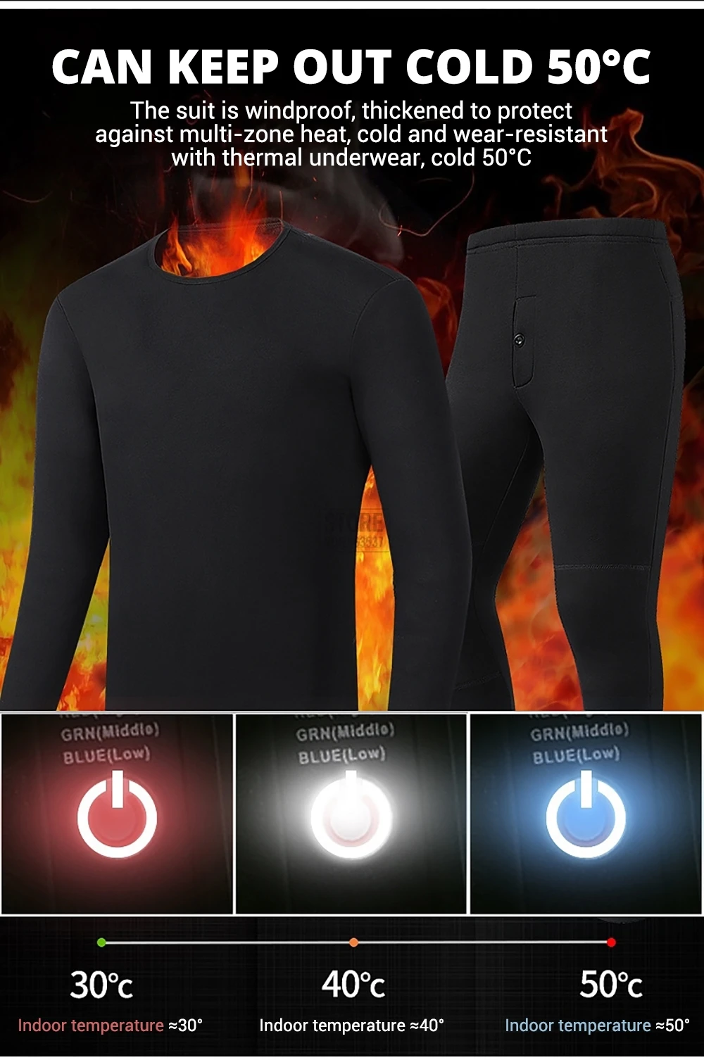 Winter Thermal Heated Jacket Men Vest Heated Underwear Men's Ski Suit USB Electric Heating Clothing Fleece Thermal Long Johns