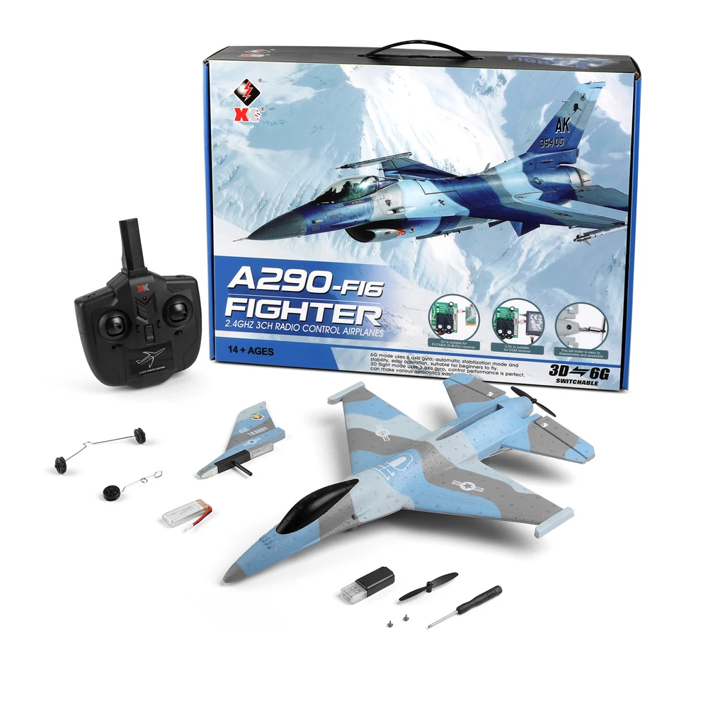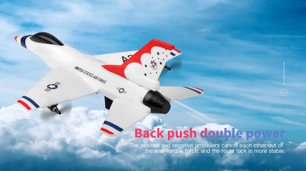 -Scaled down according to F-16B, two-channel design, easy to learn, the aileron channel controls the aircraft to turn left and right, and the throttle controls the aircraft to climb and descend.