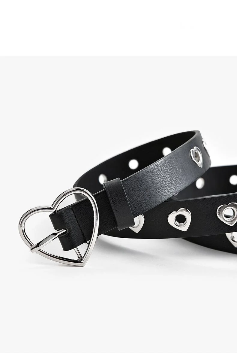 Women Belt Fashion Leather Punk Belt With Adjustable Love Heart Holes Luxury Designer Buckle Belt For Dress Jeans Cool