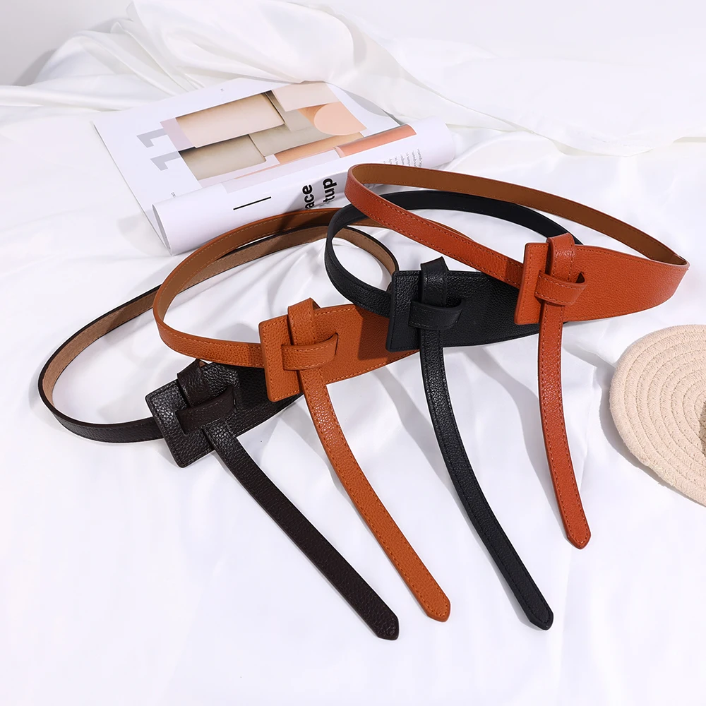 Women Designer Belts High Quality Knot PU Leather Long Cummerbunds Coat Ceinture Ladies Dress Waistband Belt Clothes Decoration