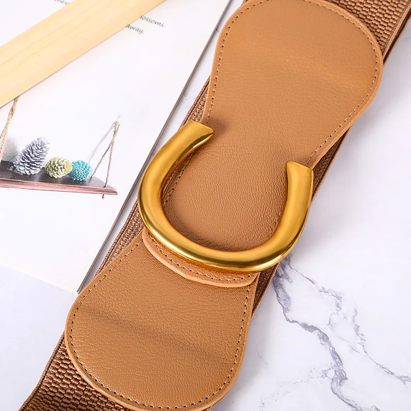 Women Stretchy Wide Waist Belts for Dresses Ladies Elastic Belt Double Ring Buckle