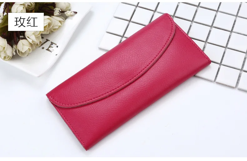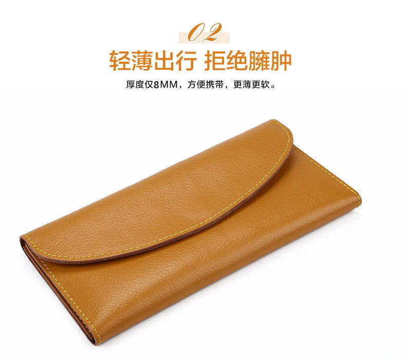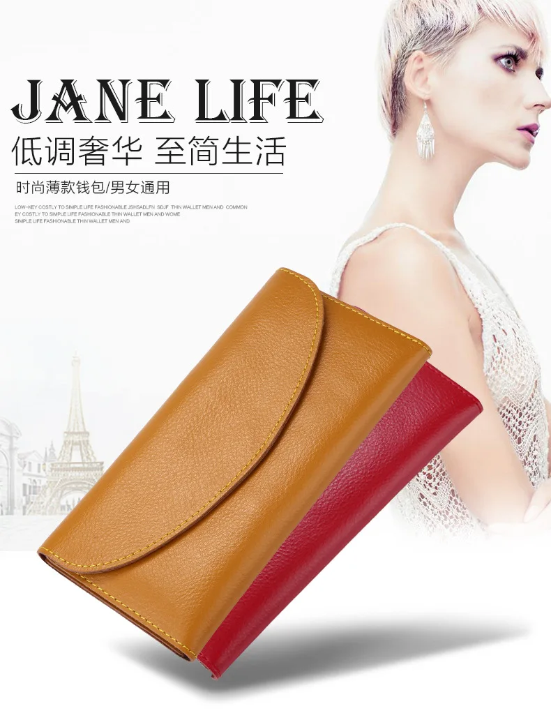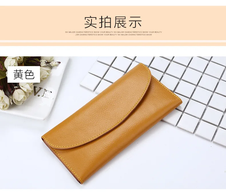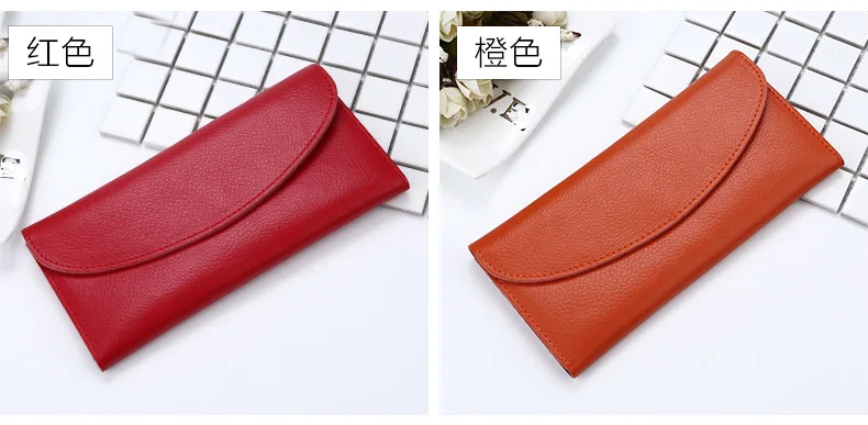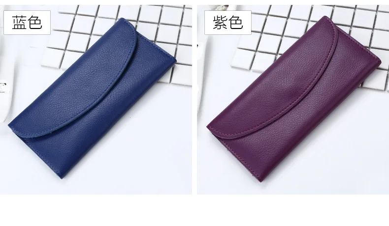 Genuine Leather Women Wallet Fashion Solid Color Coin Purse Multifunctional Cowhide Female Long Women Purses