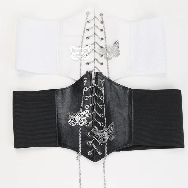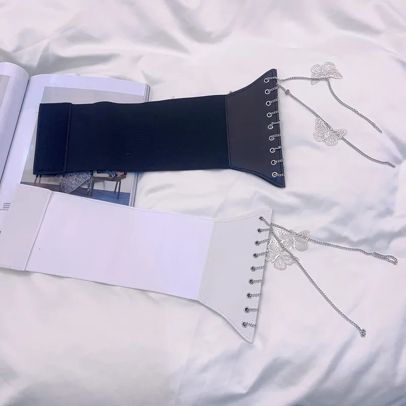 Women's Elastic Binding Waistband Butterfly Chain Wide Corset Belt Female Dress Cummerbunds Clothes Accessories
