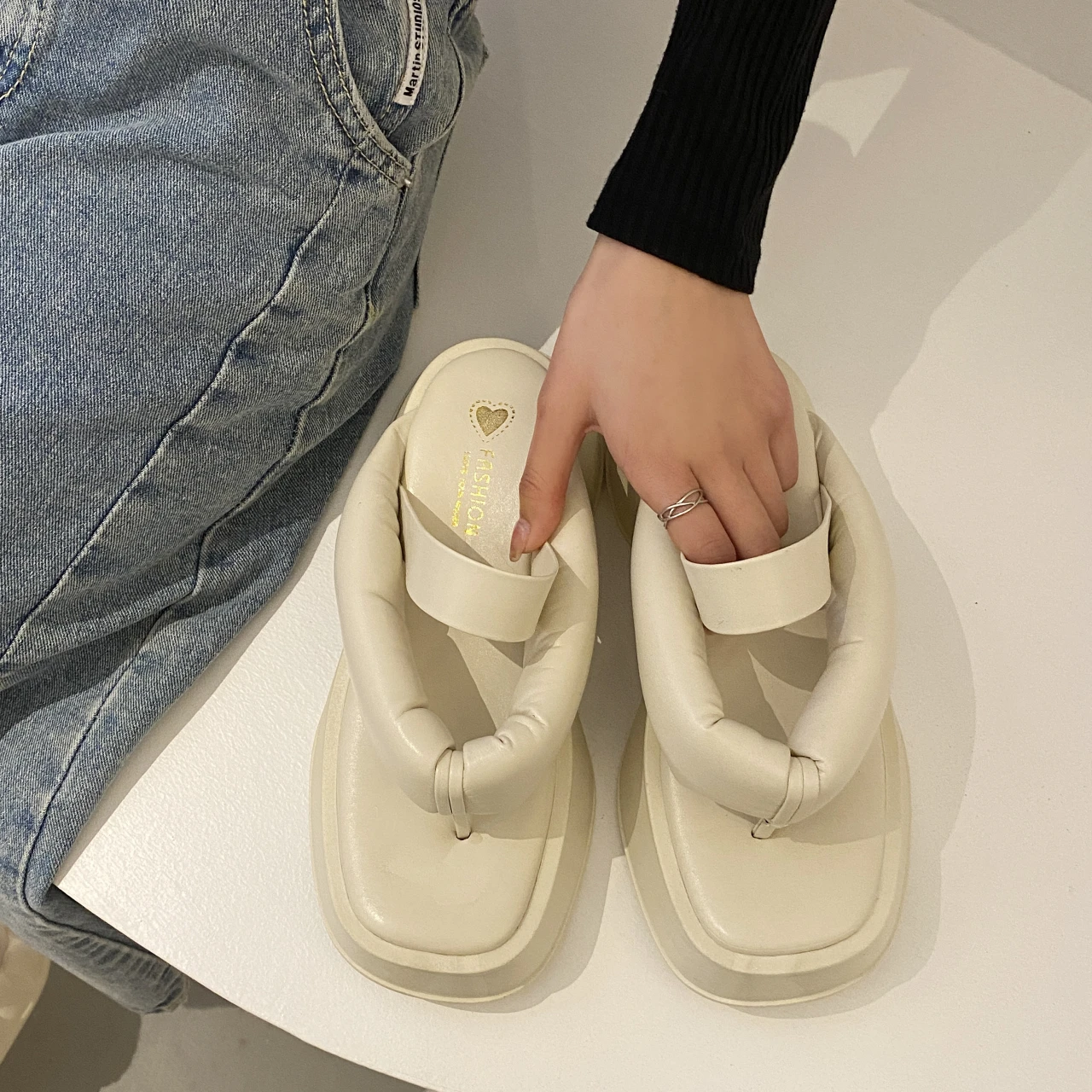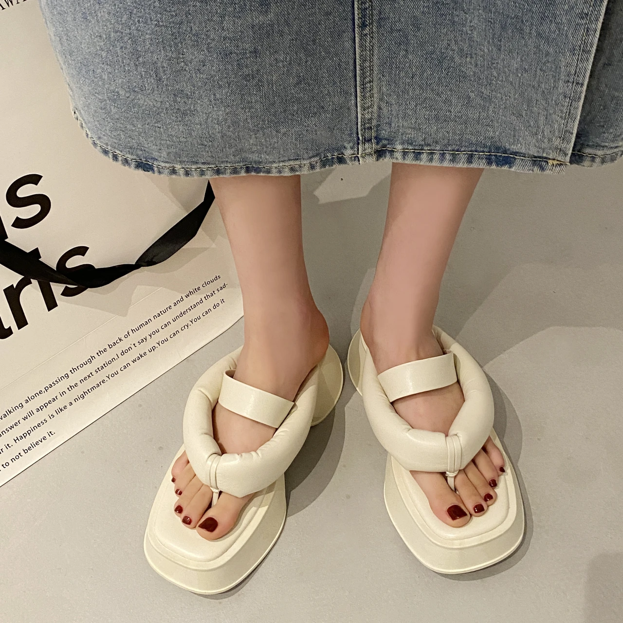 Women's Flip Flops Summer Luxury Shoes Slippers for Home Cloud Slipper Platform Medium Heel Fashion on Offer with Free Shipping