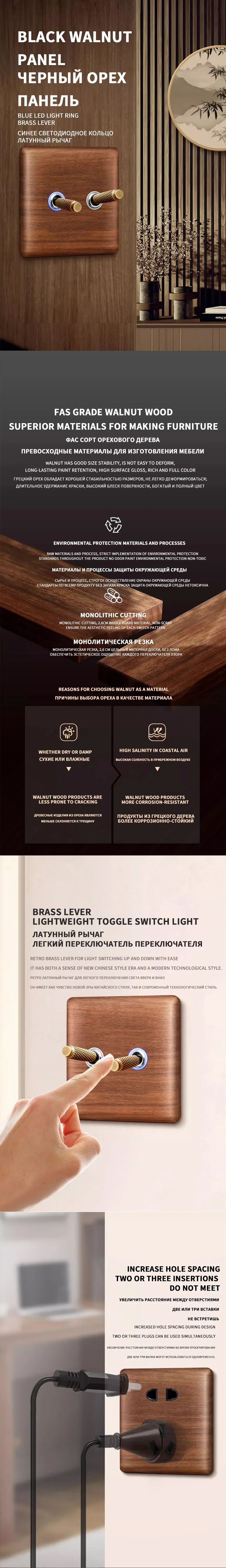 Choose Options Quick view Black walnut wood retro British light switch socket, bedside wall lamp switch LED dimmer, pure wood brass toggle switch board $12.64 - $34.58