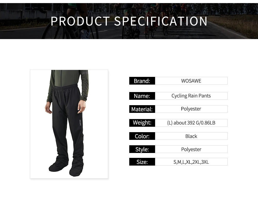 Package Included:1 x WOSAWE Men's Cycling Rain Pants