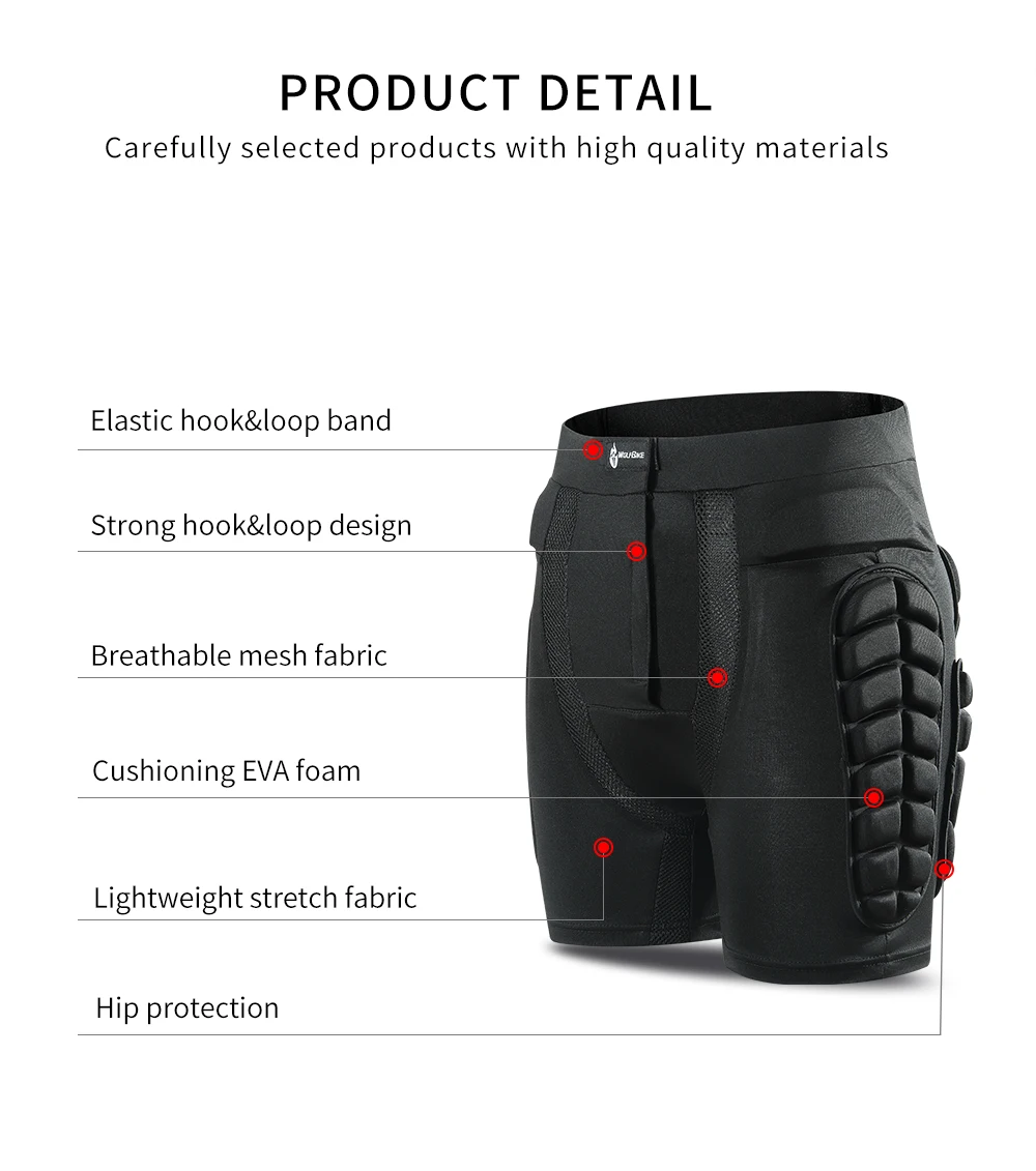 Protects the vulnerable hip, thigh, and tailbone with ample padding