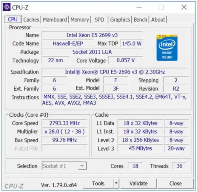 Level 3 cache size | 45 MB 20-way set associative shared cache | ||||||