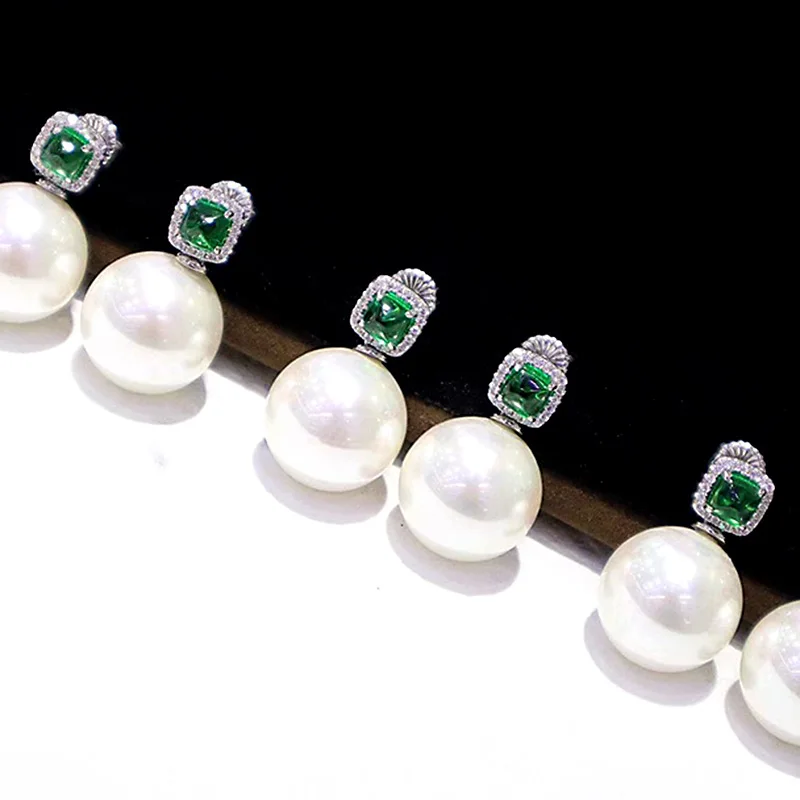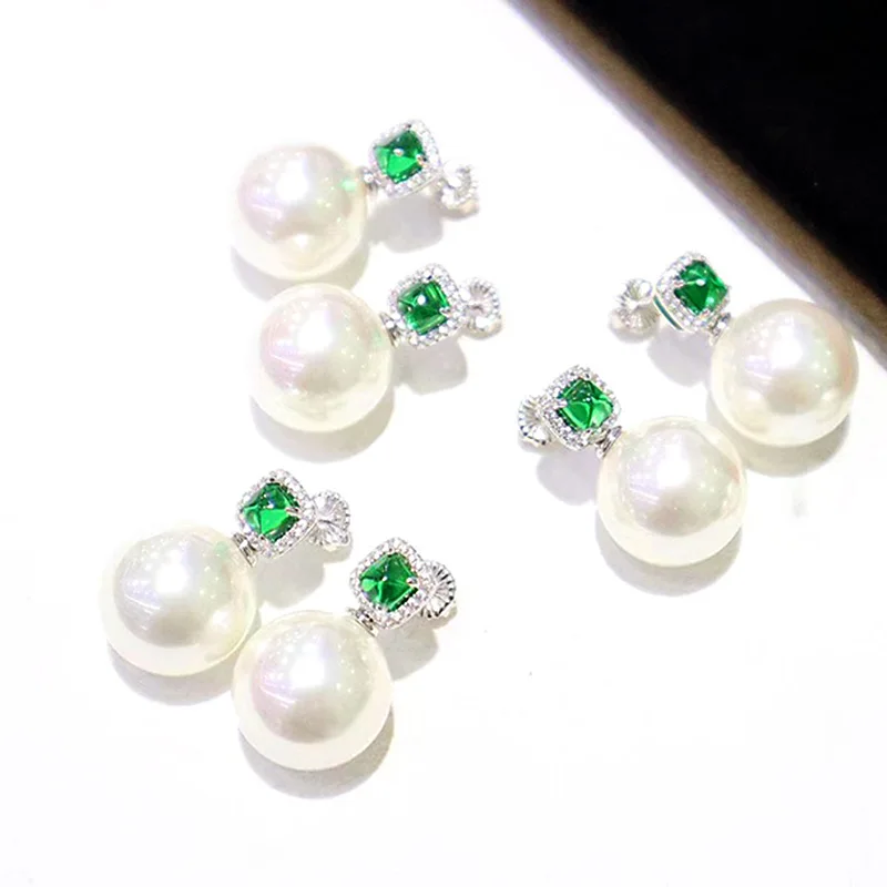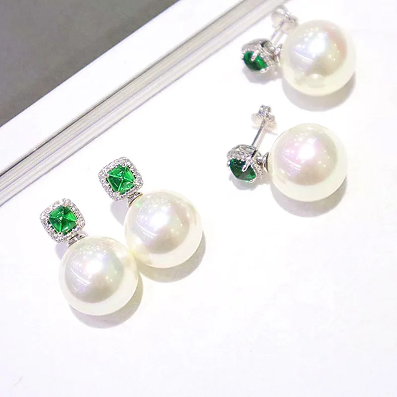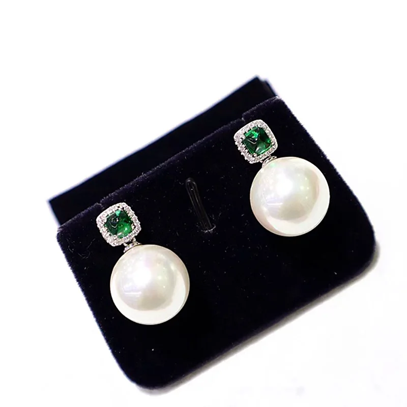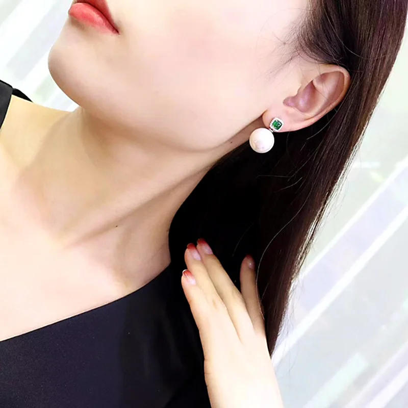 Description Description ZOCA Elegant 925 Sterling Silver Zircon Vivid Green Natural Round Pearl Earrings Women's Jewelry Gifts Party Friends Family View AllClose